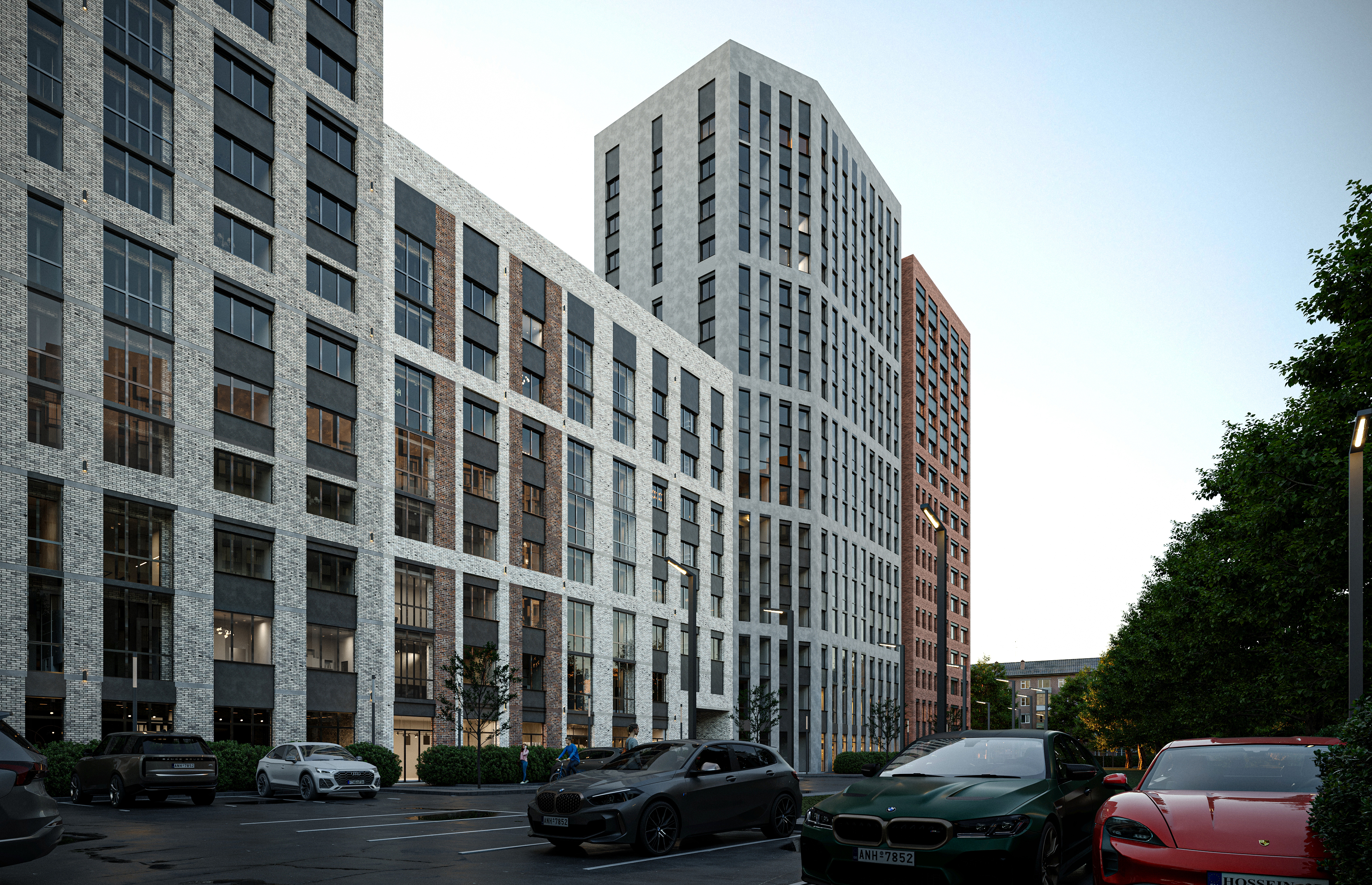 Внутри комплекса предусмотрены функциональные и стильные лобби с местами ожидания, велосипедными и колясочными. Также имеется подземный паркинг с лифтом из жилой части домов и функциональные кладовые.